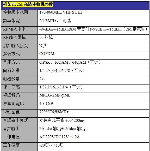 •接收灵敏度:≤0.25μV(12dB信纳比)