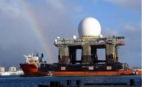 因为地球曲率的关系,固定式雷达能覆盖的范围有很大限制。“海上巨眼”SBX-1海基X波段雷达包含许多小的雷达罩和一个重1814公吨的相位阵列雷达天线。这个相位阵列雷达天线需要超过一百万瓦的电力运作,拥有超过30000组传送接收T/R模组,占地384平方米,可以对目标进行搜寻和追踪。并且可以和美军位于加利福尼亚州范登堡空军基地导弹防御系统、位于阿拉斯加州里利堡基地交换信息,这两个基地都有拦截、击落导弹的能力。